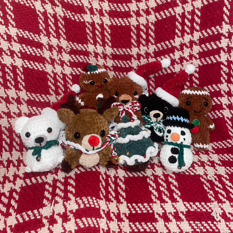 A collection of Christmas-themed plushies to brighten up your holiday! These make the perfect cuddly gifts, often featuring jingle bells (that actually jingle!) and sparkly chenille yarn.